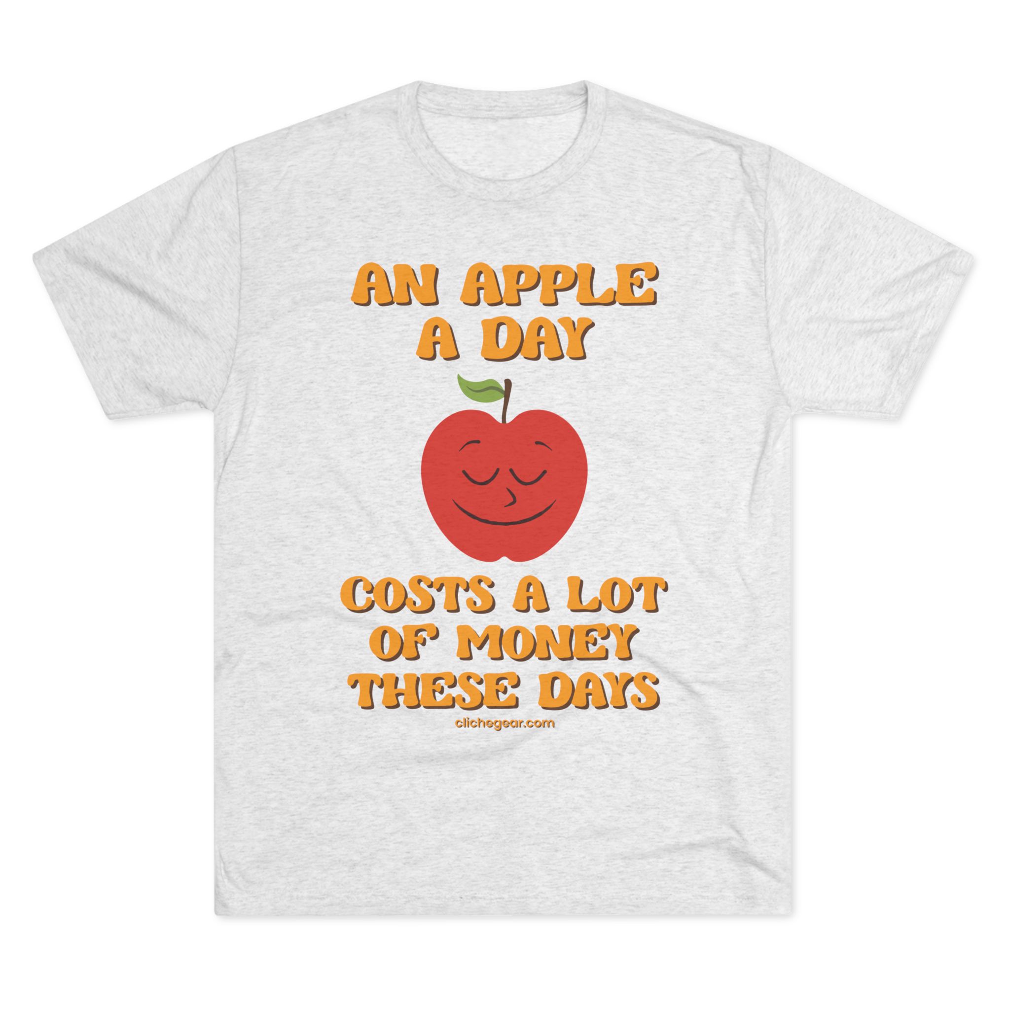 Embrace a touch of whimsy with the “An Apple A Day T-Shirt” from Cliché Gear! This delightful tee showcases a charming mid-century style cartoon apple illustration, paired with the humorous adage, “An Apple A Day Costs A Lot of Money These Days.” Perfect for those who enjoy a blend of wit and vintage flair, this t-shirt is sure to turn heads.